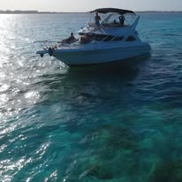 Sombrilla bimini, camas solares, baño a bordo, hielera y música Bluetooth.